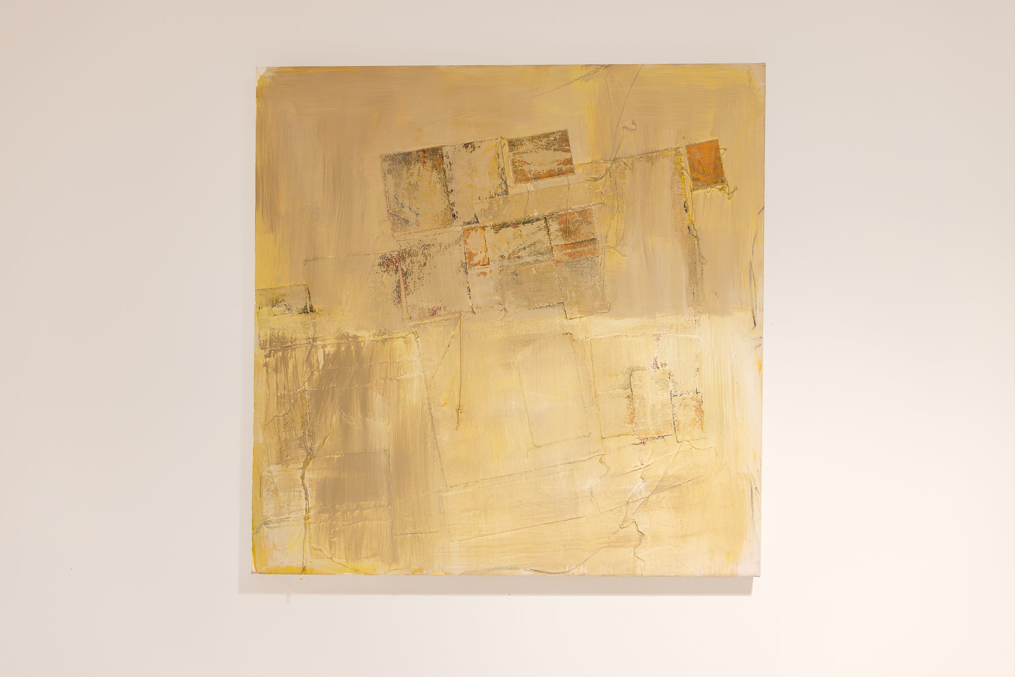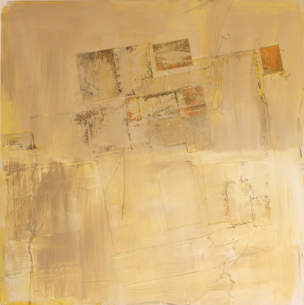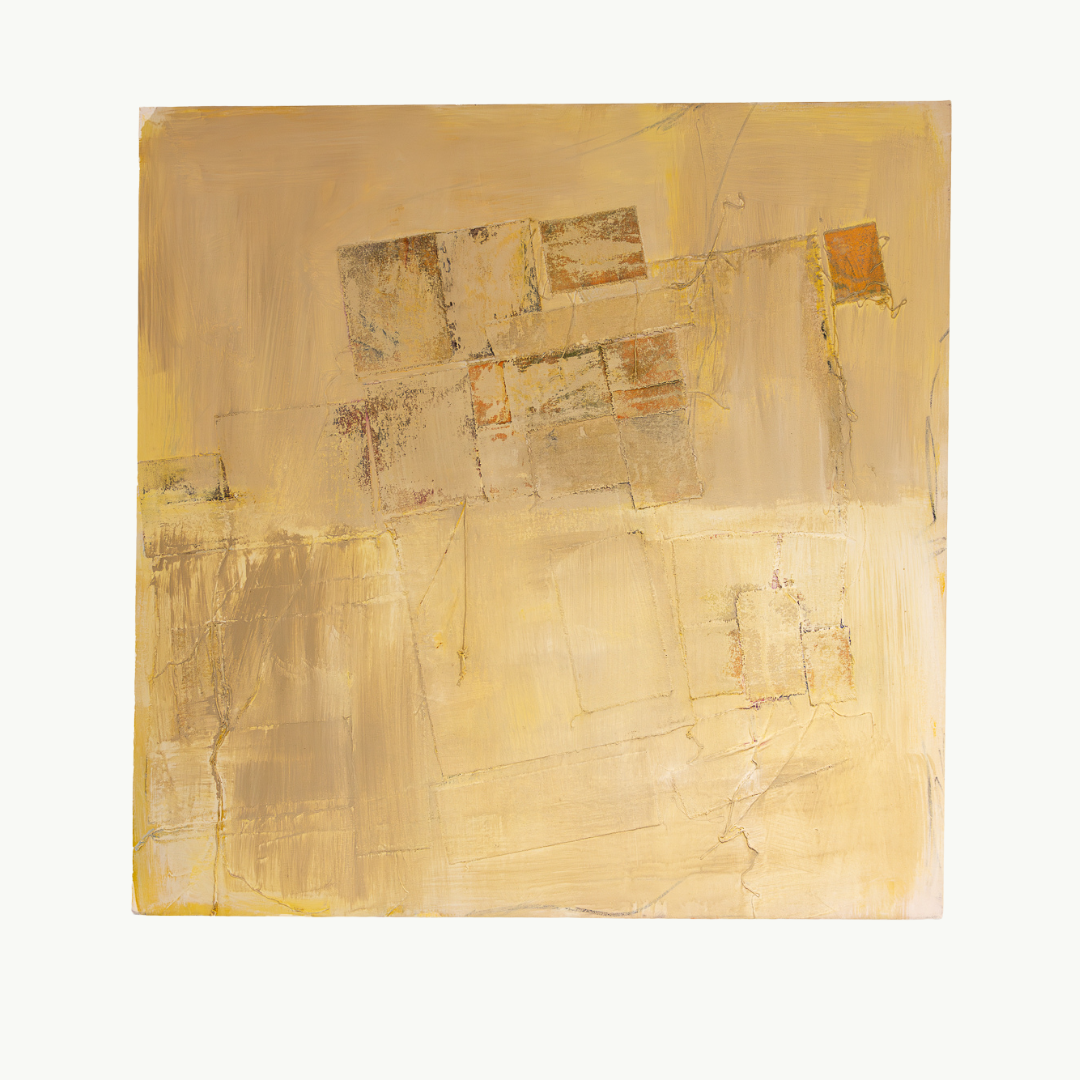 Past Stories carries the quiet resonance of memory layered into form. Soft ochre tones, weathered textures, and faint imprints of geometric shapes suggest the remains of something once present—traces of places, gestures, or conversations that linger just beneath the surface. The composition unfolds like an archaeological site of the self, where fragments of the past resurface, altered yet persistent, reminding us of the cyclical nature of time and experience. Each mark holds both presence and absence, evoking how stories are passed on, reinterpreted, and woven into the fabric of our lives.